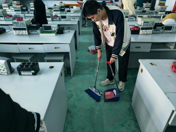 在清理电工实验室的过程中,20230121班的同学们不仅营造了一个整洁且安全的实验环境,还锻炼了自身的细心、耐心与责任感。他们深知,实验中哪怕是最微小的疏忽,都可能酿成严重的安全事故。因此,同学们以高度的专注和严谨的态度,认真对待清理工作中的每一个细节,用实际行动彰显了对电工实验的深切尊重与热爱。