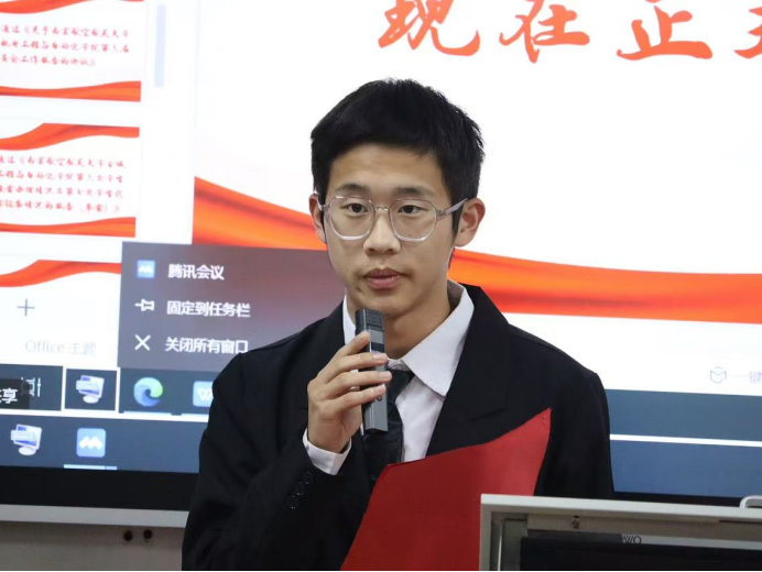 吴奕颉同学介绍第七届学生会主席团成员候选人、第七届学生会委员会委员候选人并宣读888集团官网第九次学生代表大会学生代表候选人