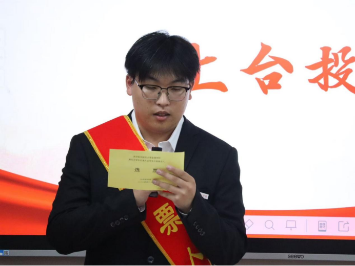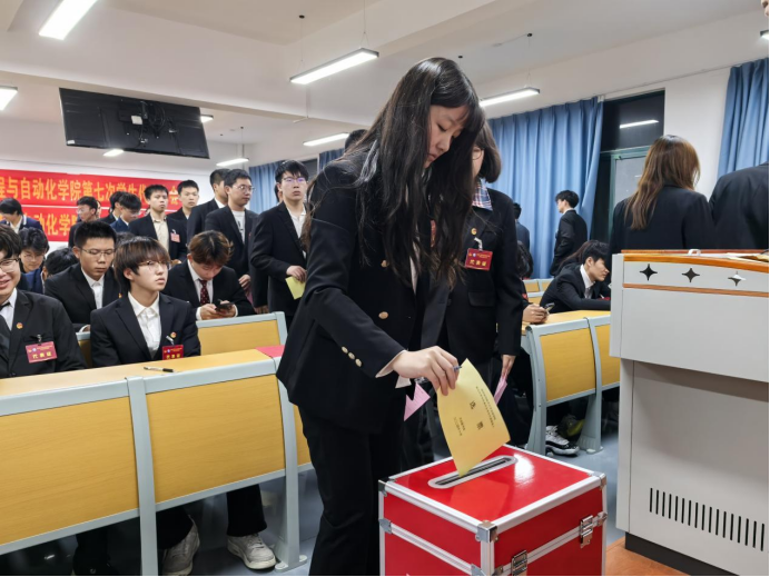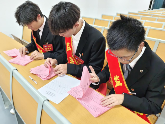 紧接着,总监票人周钲凯同学宣读第七次学生代表大会填写选票注意事项,选举南航金城学院888集团线上网站第七届学生会主席团成员、第七届学生会委员会委员及参与第九届校学代会代表。各学生代表参与选举,并投出庄严的一票。