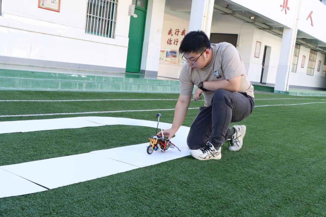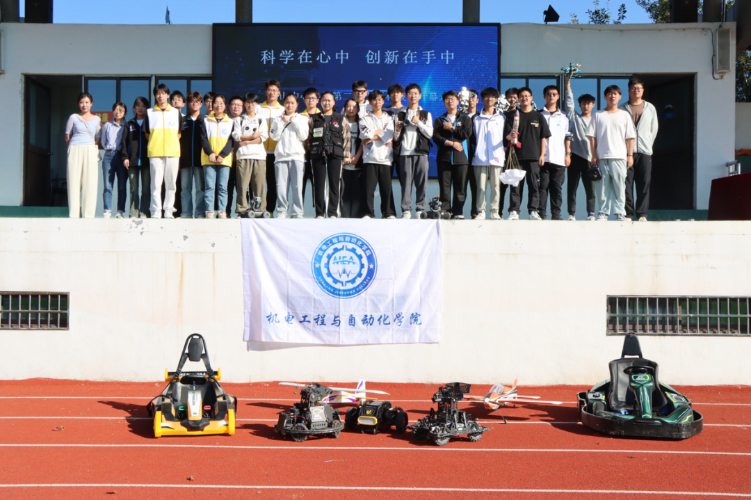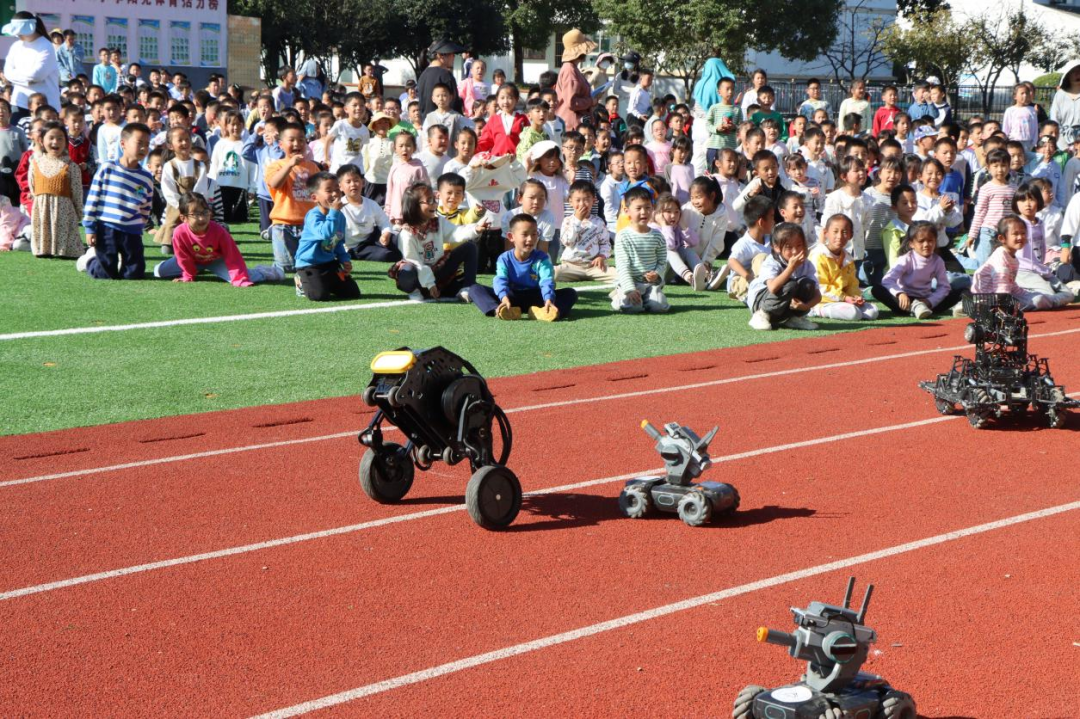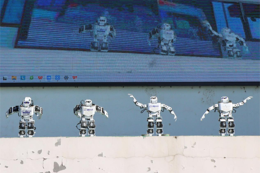 零度车队的同学们驾驶着自主研发的卡丁车在操场上进行绕圈展示,并带来了一段自编的智能机器人舞蹈。