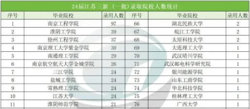 24届江苏三新(一批)录取院校人数统计(注:数据来自国家电网三新公司录取公示)