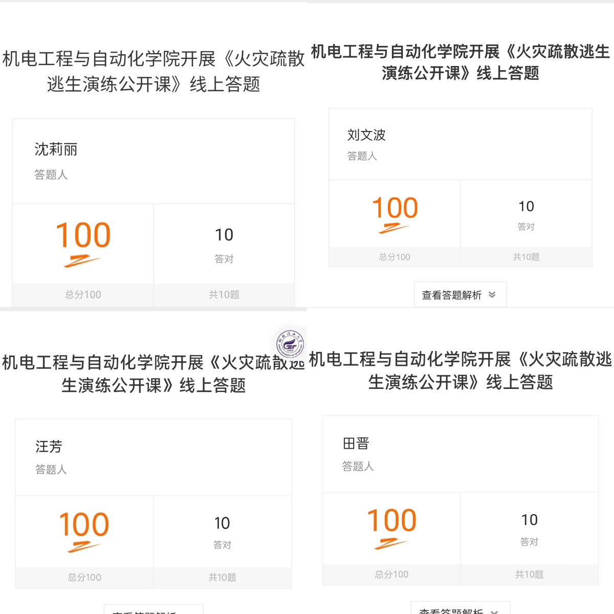 888集团线上网站组织了200余场,做到学院教师全覆盖、覆盖学生4600余人、分别在学院大厅、303党员之家、学院安排教室A1N401和A1N404、各上课教室、学生宿舍、图书馆及线上多渠道观看。观看结束后,组织师生完成学院开展的《火灾疏散逃生演练公开课》线上答题,检查学习效果,师生们积极撰写观后感。