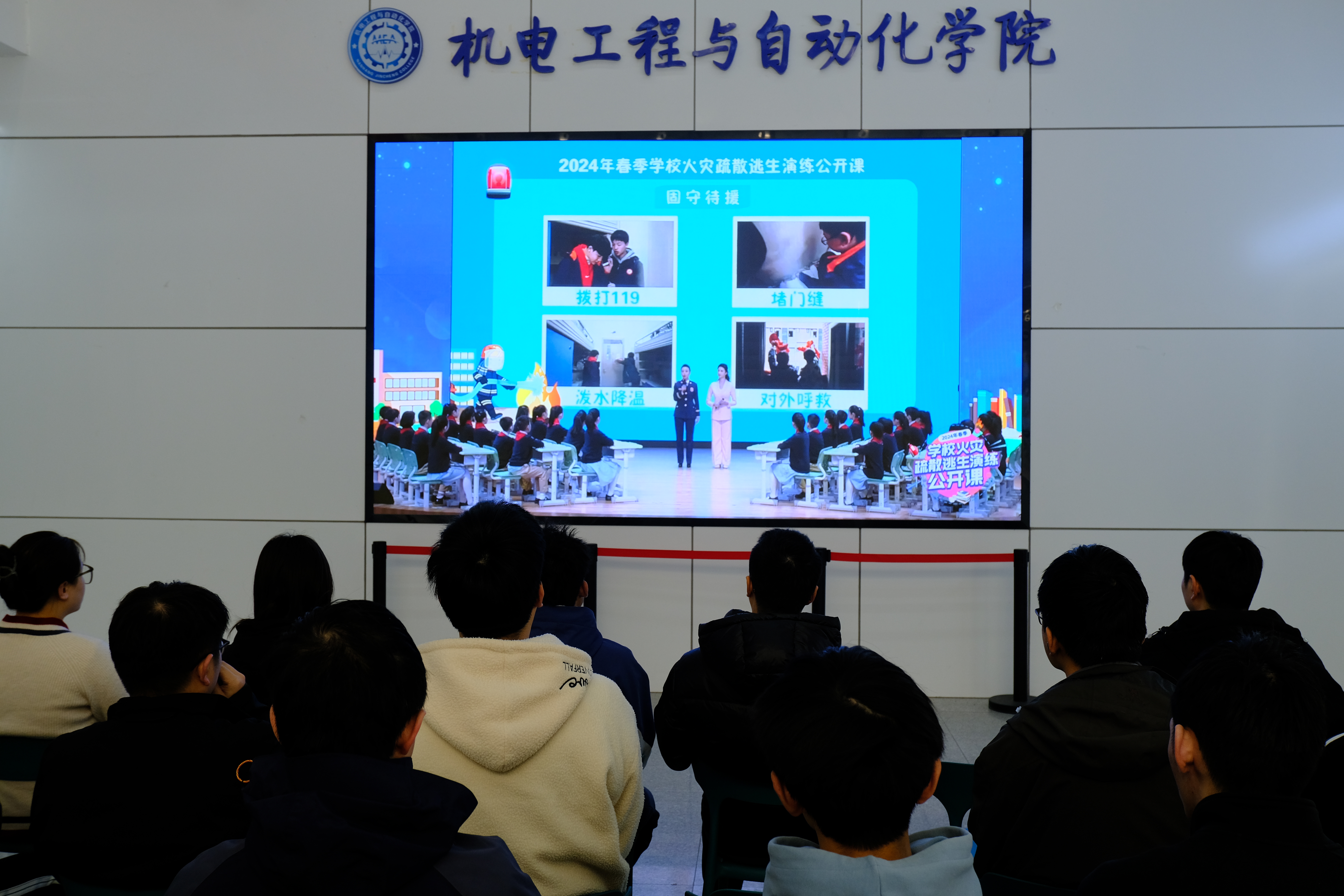 为进一步提升师生消防安全素质和逃生自救能力,切实加强大学生的消防安全意识,机电与自动化学院严格按照《省教育厅省消防救援总队关于联合开展2024年春季全省学校火灾疏散逃生大演练活动的通知》和我校后勤保卫处的相关要求,于2023年3月15日上午9:00,组织全体师生共同观看由教育部、国家消防救援局联合举办的2024年春季学校火灾疏散逃生演练公开课。