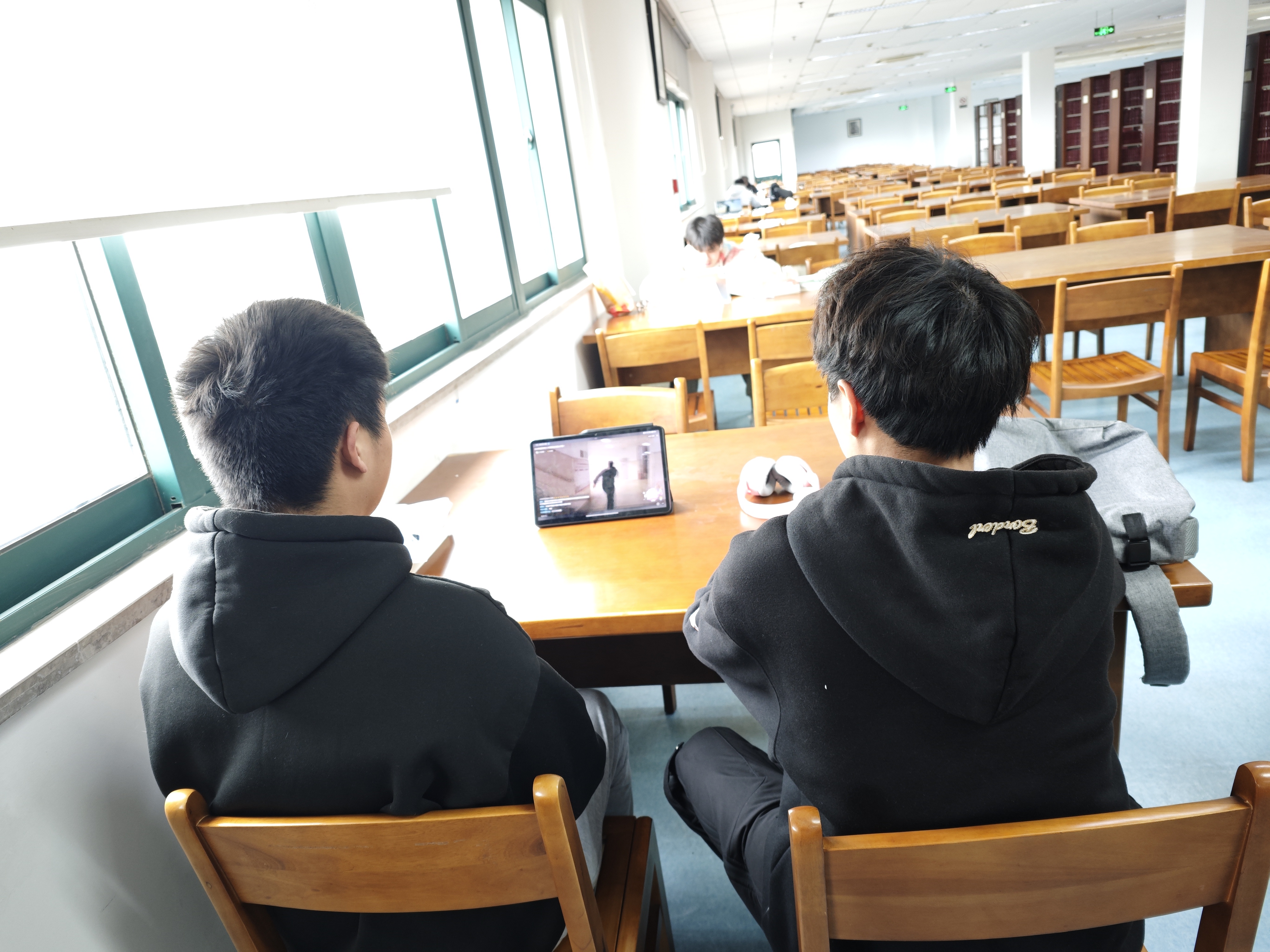 学生在图书馆观看