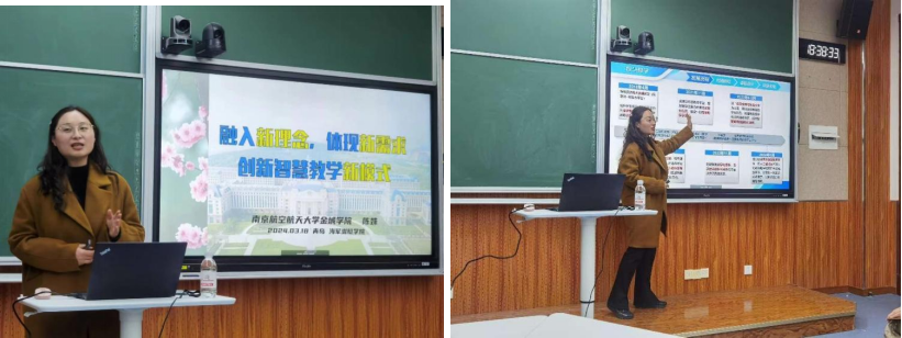 2024年3月18日,我院受邀派遣陈姝副教授前往海军潜艇学院基础部,进行了一场以“智慧教学模式创新”为主题的讲座。此次讲座不仅彰显了我院在智慧教学领域的率先探索,也为两校之间教学研究交流与合作搭建了桥梁。讲座由海军潜艇学院基础部主任李丹妮教授主持,采取雨课堂作为智慧互动手段,40余名教员听取了报告。