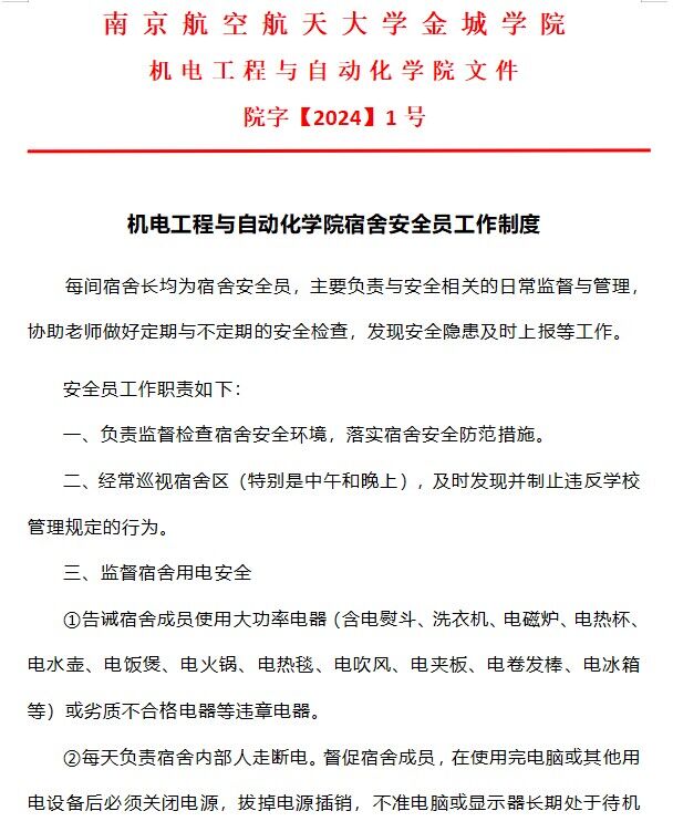 制定相关宿舍安全员制度