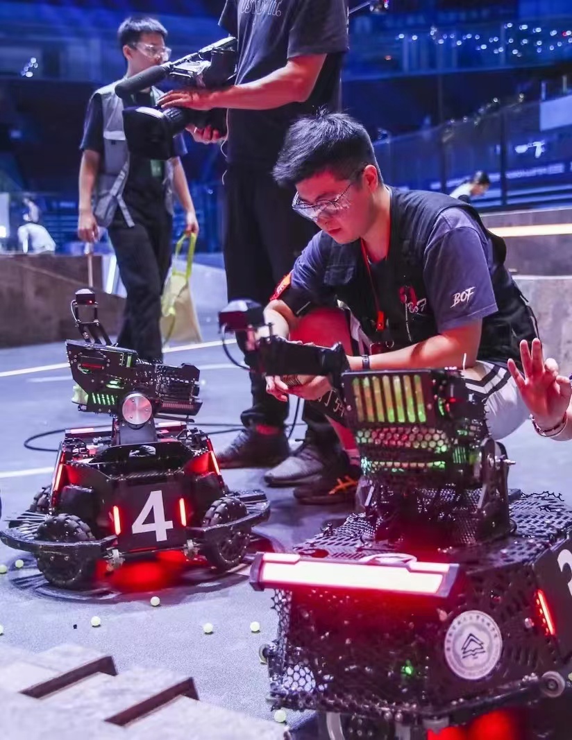 除了老师们给的“演练技巧”和“划重点”,张建兵说:“最重要的是,这些队员4年在BOF机器人创新团队里无数个日夜对机器人科创的实践操作和钻研,每位队员至少参加过6场RoboMaster机甲大师赛高校联盟赛、区域赛和总决赛等赛事的实战洗礼,这些日积月累的经历,成为他们最硬的底气。”
